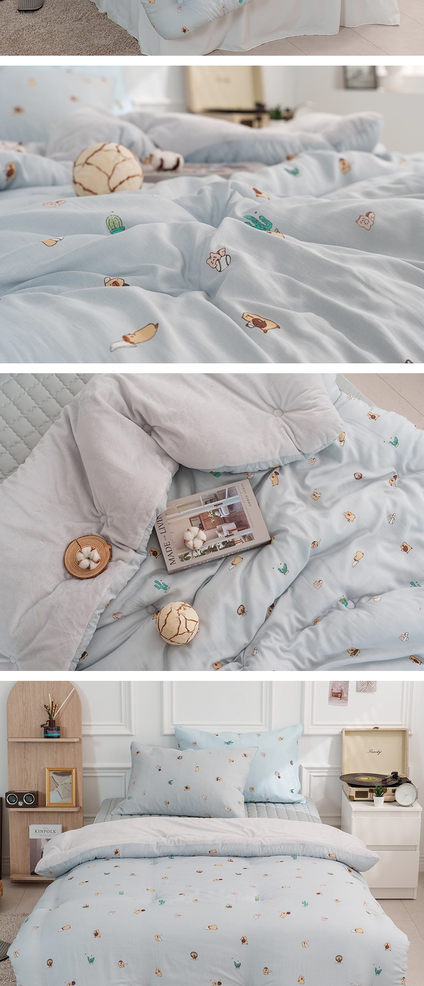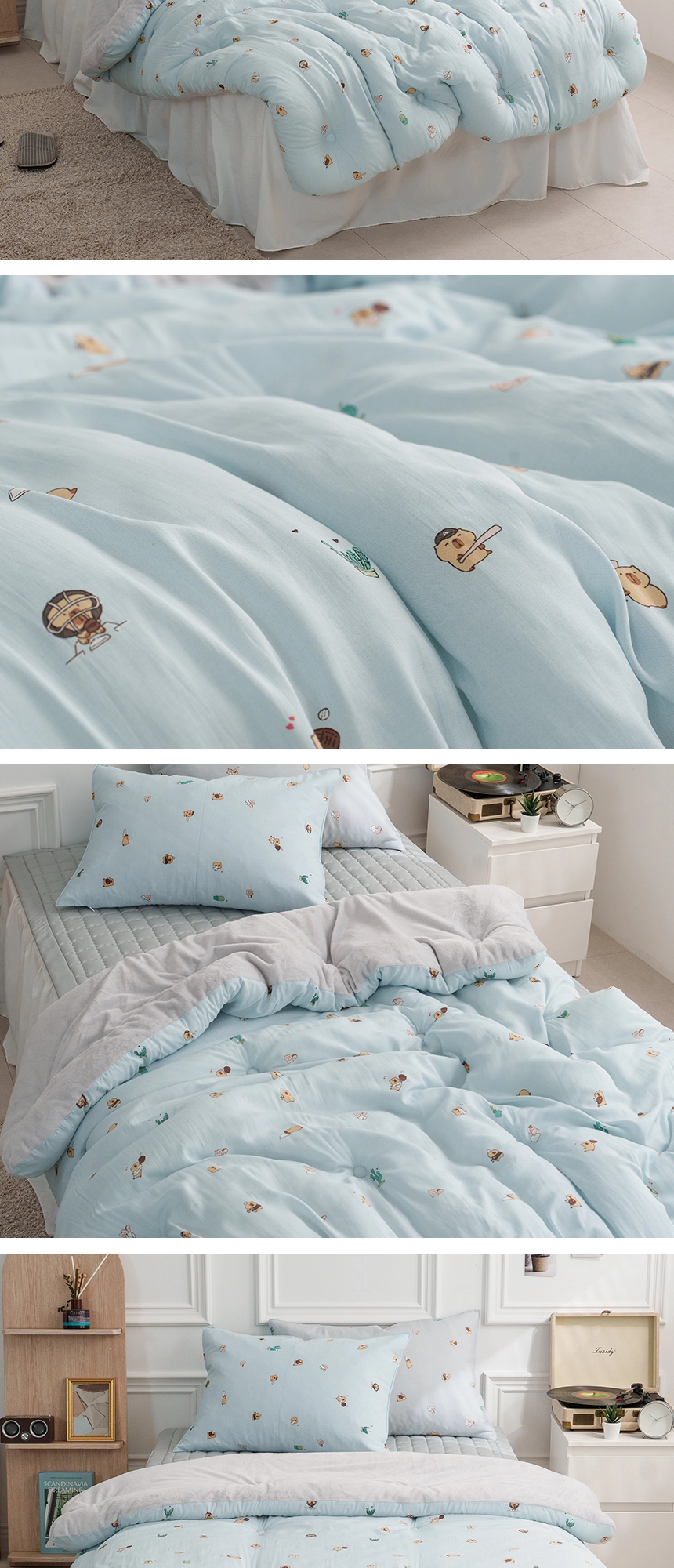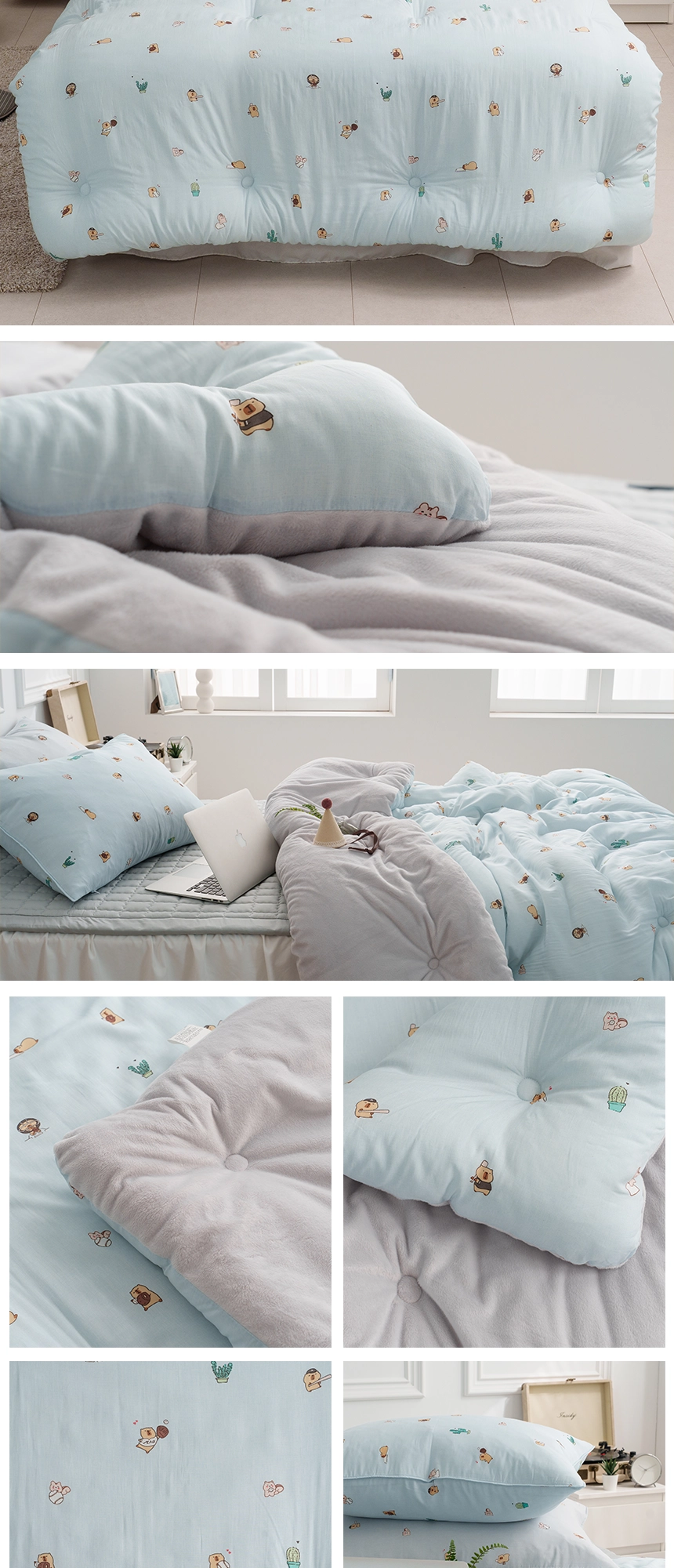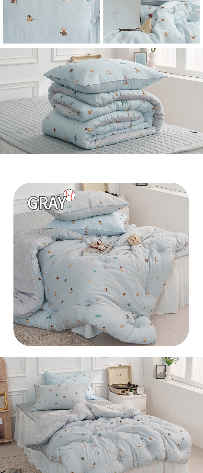 제품명 : 디아즈 소재 : 겉감 – 모달 100% 안감 – 3미리 극세사 충전재 : 옥수수솜 색상 : 블루, 그레이 사이즈 S이불 (150*200) 50*70