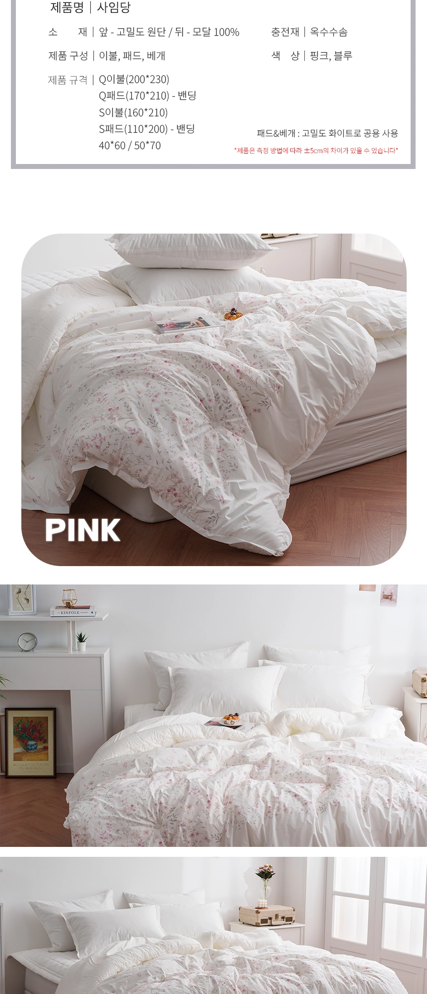 패드&베개 : 고밀도 화이트로 공용 사용